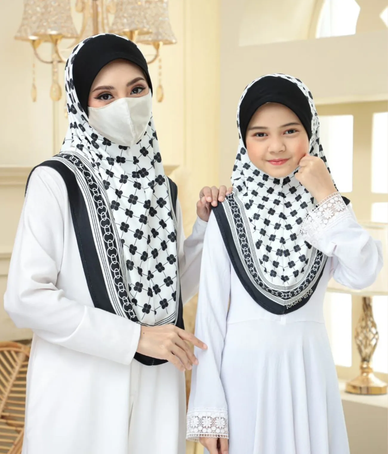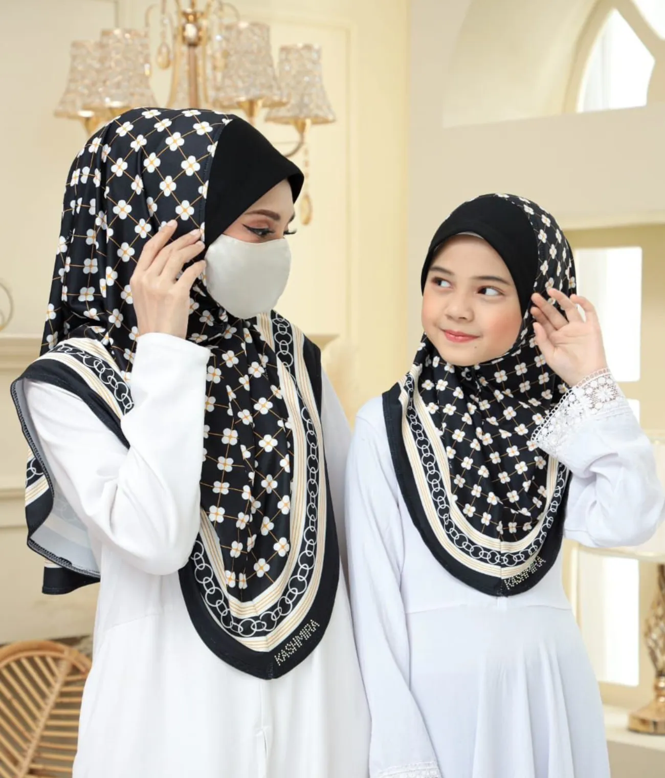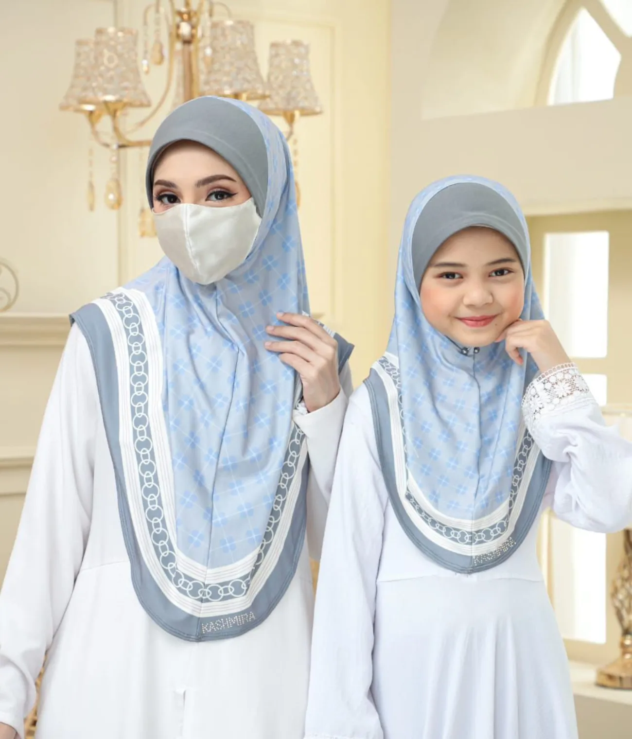 Add elegance to your modest wardrobe with our khimar scarf, crafted for style and comfort. Featuring a stunning rhinestone logo with KASHMIRA, this scarf adds a touch of sophistication to your modest look while offering complete coverage.
